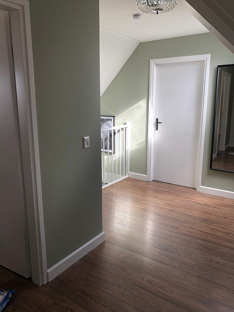 Binnenschilderwerk van de hele benedenverdieping in verschillende Farrow and Ball tinten.